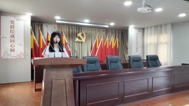 下午3时,在与社区负责人取得联系后,团支部确定在凤凰社区党群活动中心开展活动。社区党群工作者以及部分居民参加了此次活动。此次活动由团支书王佳璇主持。王佳璇向在场的听众介绍了本次团日活动的内容及流程。所要讲述的故事围绕党史、新中国史、改革开放史以及社会主义发展史展开,八位团支部成员分别选取“四史”中有代表性的几位历史人物进行介绍。同学们轮流上台,绘声绘色的与在场所有人分享着准备好的精彩故事。经过活动前期的充分准备、配合上新颖生动的讲述形式,以及耳熟能详的伟人故事,将一个个鲜明生动的伟人形象展现得淋漓尽致。开国大将粟裕,“科学脊梁”钱学森,“人民楷模”王有德……活动现场掌声阵阵,称赞不绝。通过同学们的精彩讲述,让党史知识如同春风化雨般,在人心中生根发芽。整个会场沉浸在红色文化的熏陶之中,党的百年征程画卷似乎在所有人面前徐徐铺开,一股红色暖流注入人们心田。